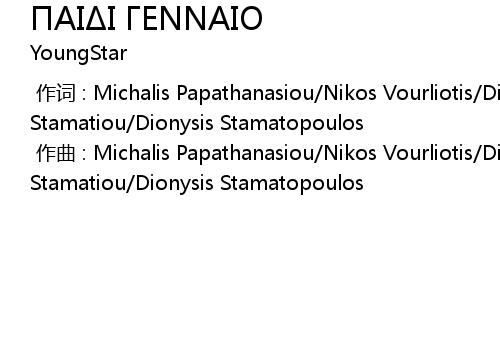 | [00:00.000] | 作曲 : Michalis Papathanasiou/Nikos Vourliotis/Dimitris Stamatiou/Dionysis Stamatopoulos |