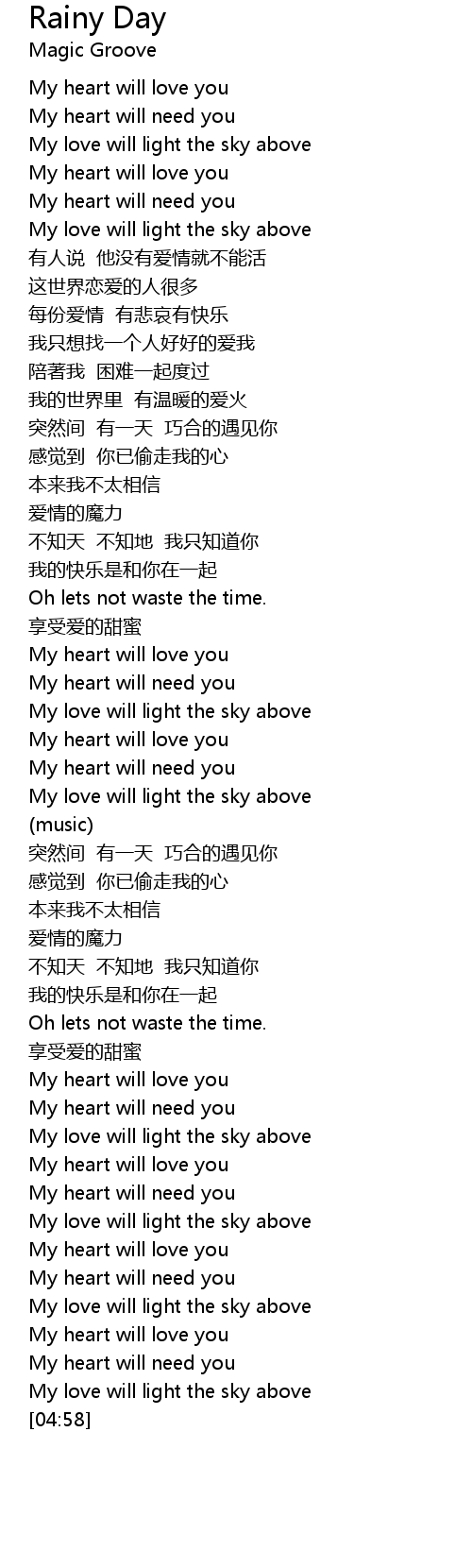 | [04:41] | My heart will love you |