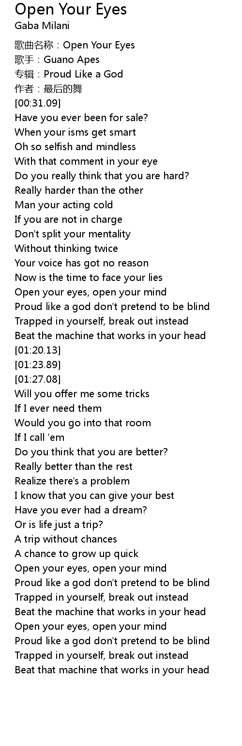 | [00:00.00] | gē qǔ míng chēng: Open Your Eyes |