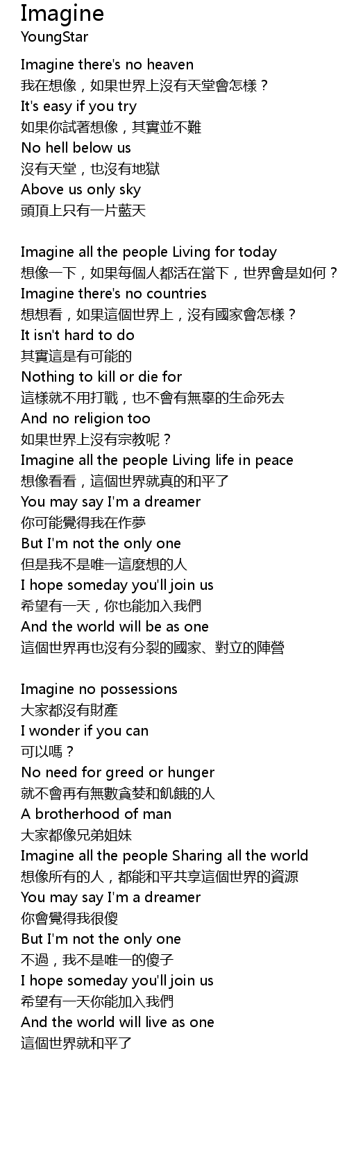 | Imagine all the people Living life in peace | |
