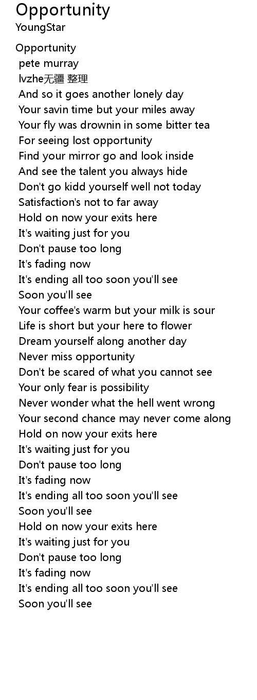 | Song | Opportunity |