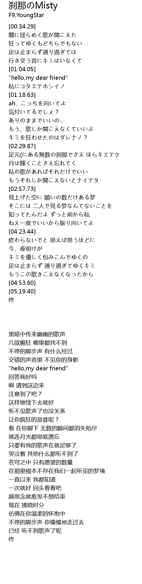 | [00:36.39] | 闇に揺らめく歌が聞こえた |