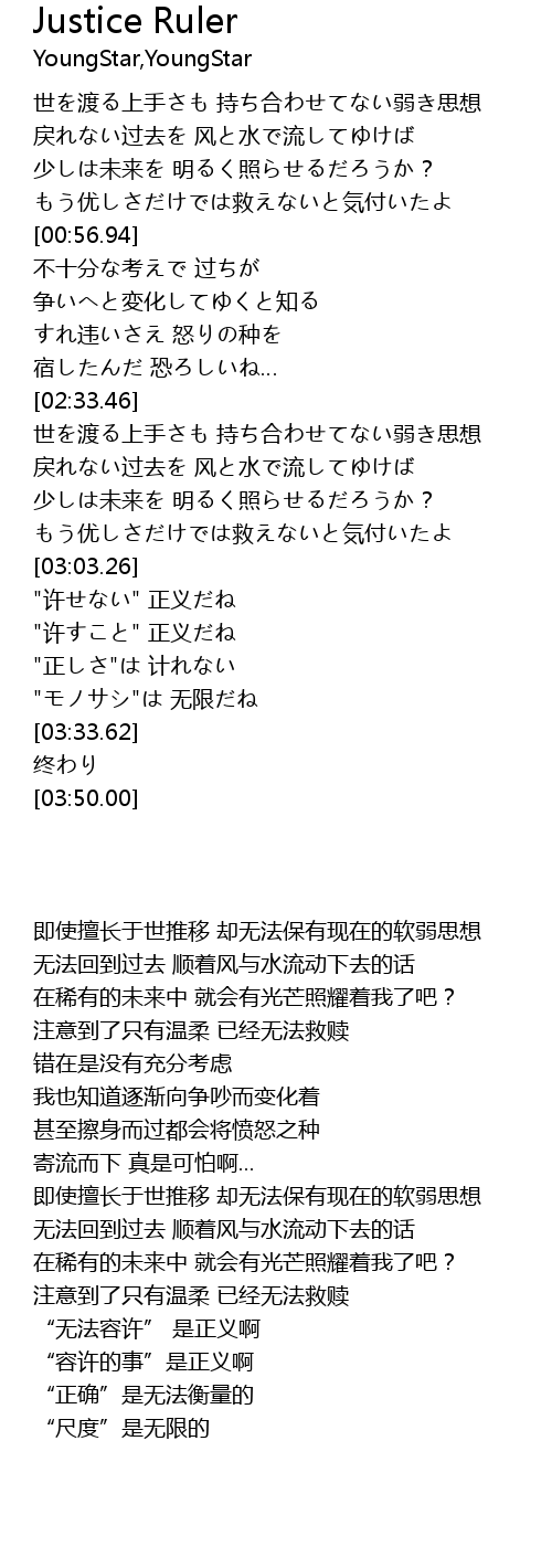 | [00:27.61] | 世を渡る上手さも 持ち合わせてない弱き思想 |