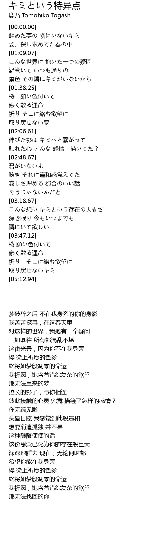醒めた夢の 隣にいないキミ |