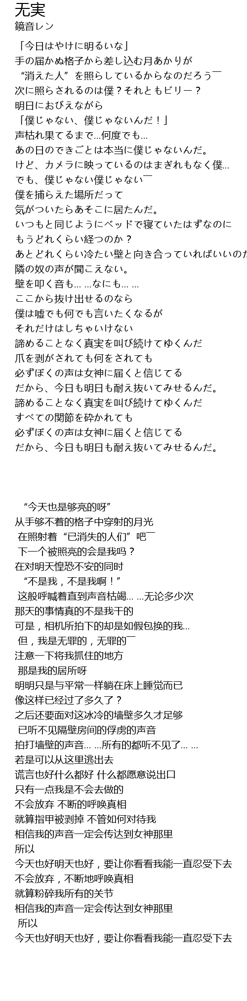 | [00:46.60] | あの日のできごとは本当に僕じゃないんだ。 |