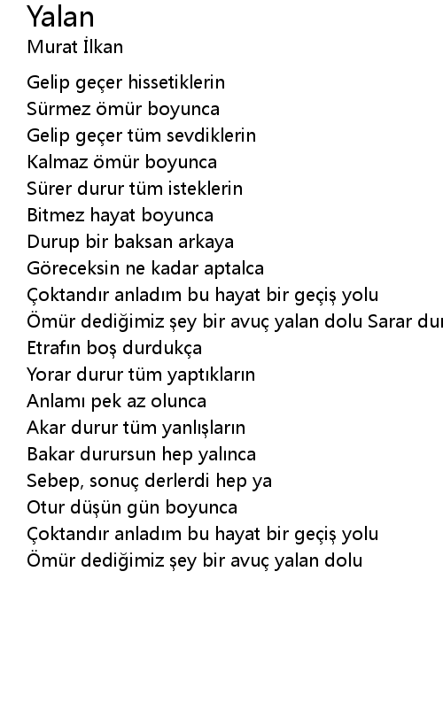 | mü r dedi imiz ey bir avu yalan dolu Sarar durur tü m takt klar n | |