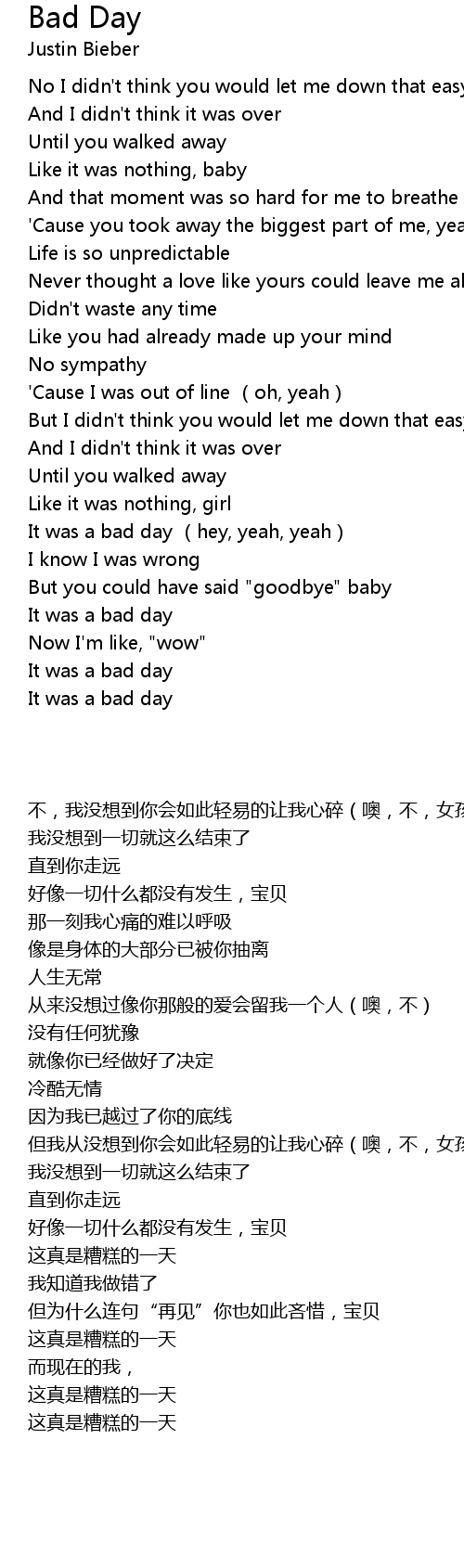 | [01:33.65] | It was a bad day (hey, yeah, yeah) |