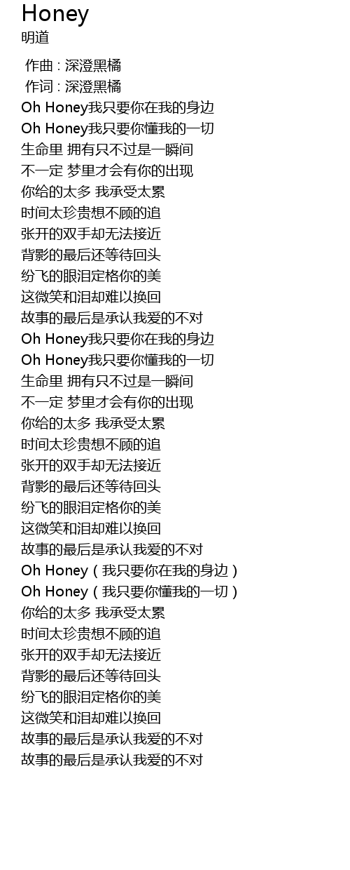 | [00:20.32] | Oh Honey我只要你在我的身边 |