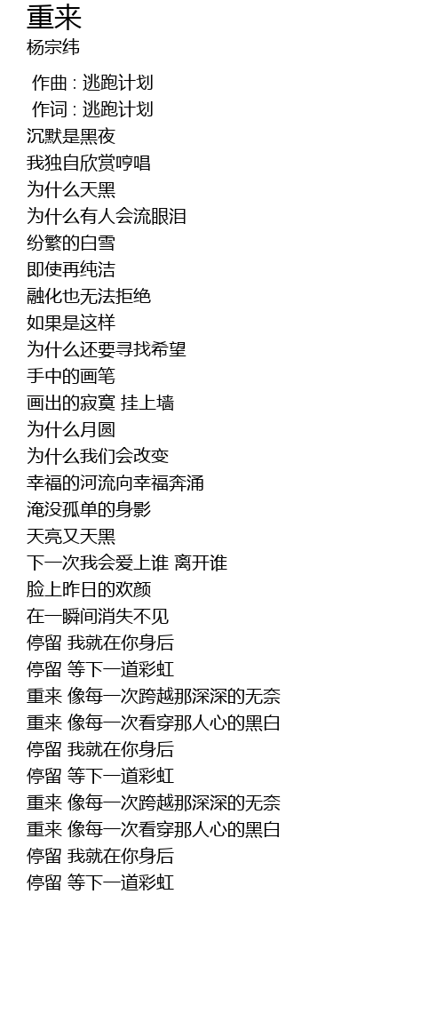 | [00:01.00] | 作词 : 逃跑计划 |