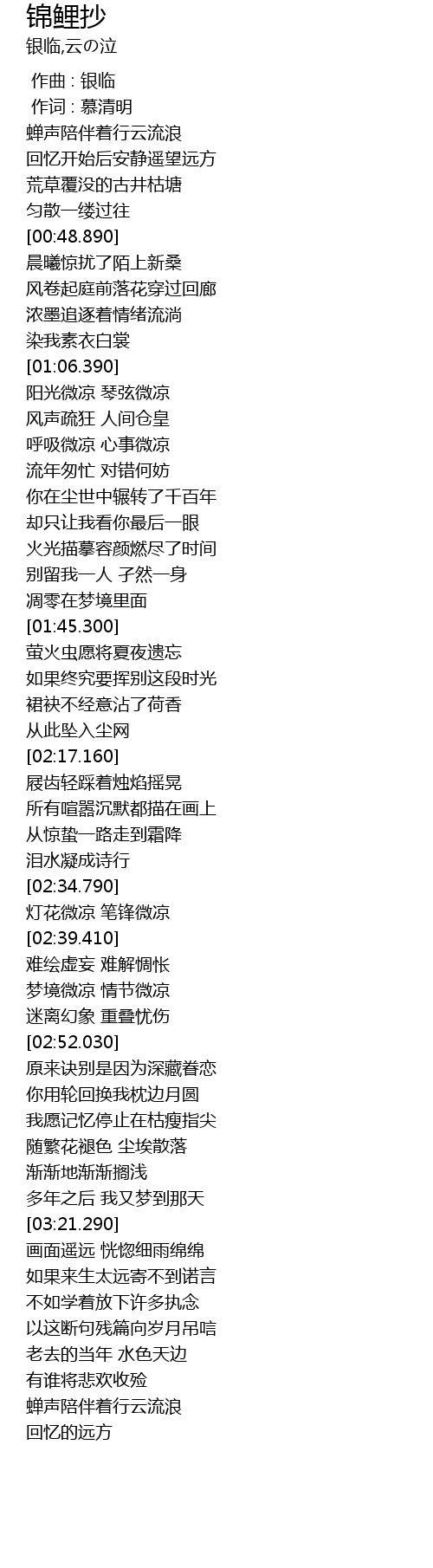 | [03:50.570] | 蝉声陪伴着行云流浪 |