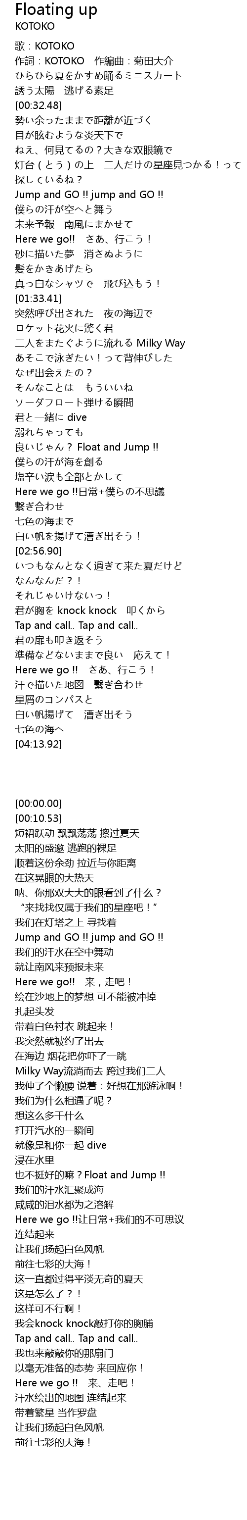 | [02:25.94] | 良いじゃん? Float and Jump !! |