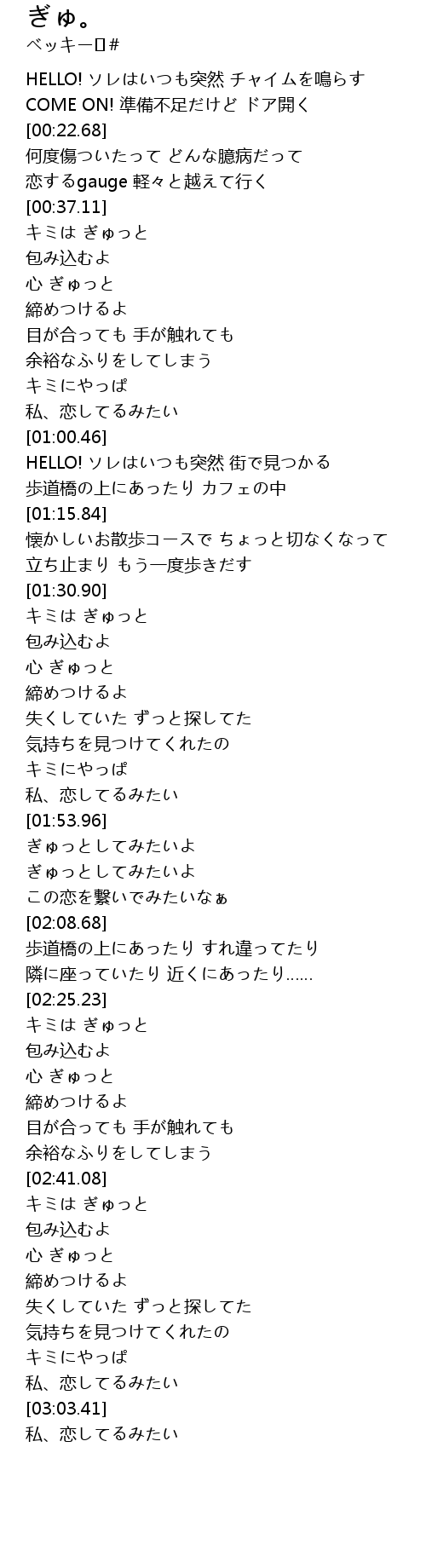 | [01:54.42] | ぎゅっとしてみたいよ |