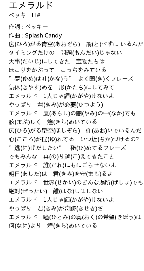 | [02:41.48] | エメラルド 世界(せかい)のどんな場所(ばしょ)でも |