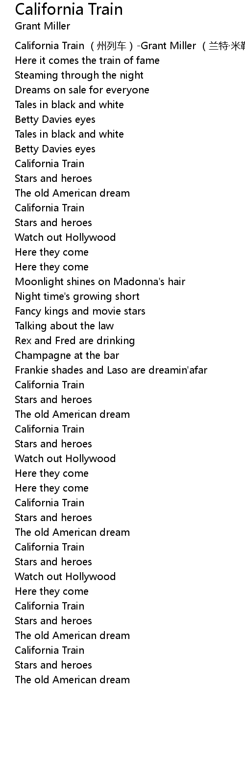 | [00:00.00] | California Train (州列车)-Grant Miller (兰特·米勒) |