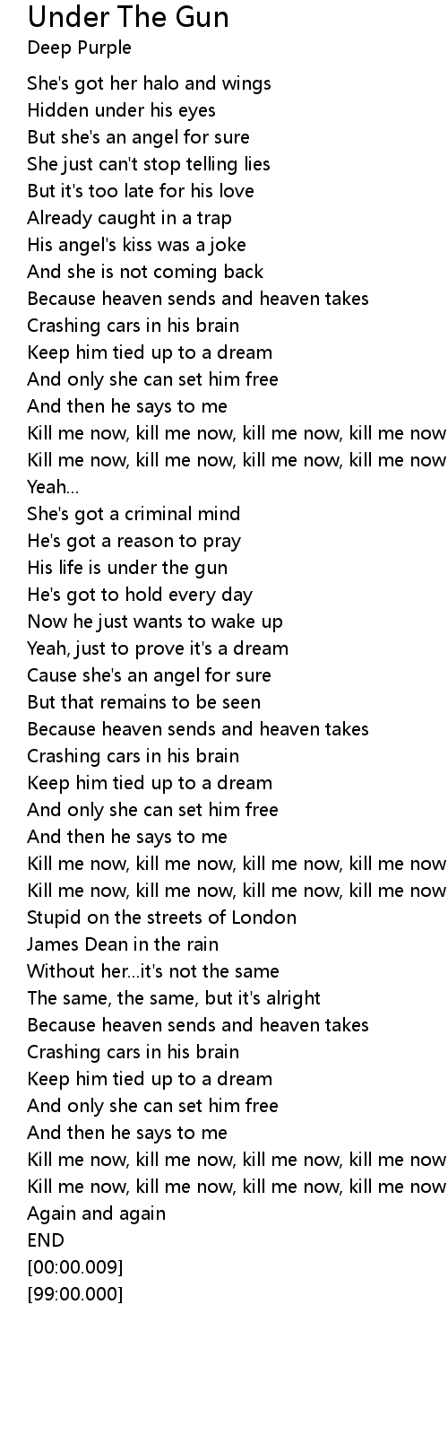 Kill me now, kill me now, kill me now, kill me now |