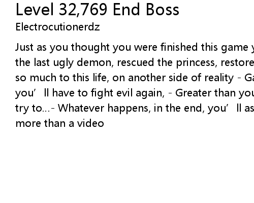 | Just as you thought you were finished this game you' ve been playing Beaten the last ugly demon, rescued the princess, restored peace. Realize there' s so much to this life, on another side of reality Games rules are changing, you' ll have to fight evil again, Greater than you had thought, if you dare try to Whatever happens, in the end, you' ll ask yourself Has this become more than a video |