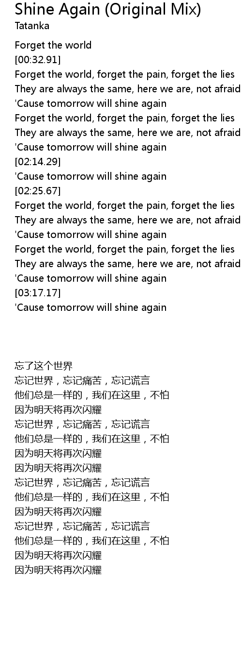 'Cause tomorrow will shine again |