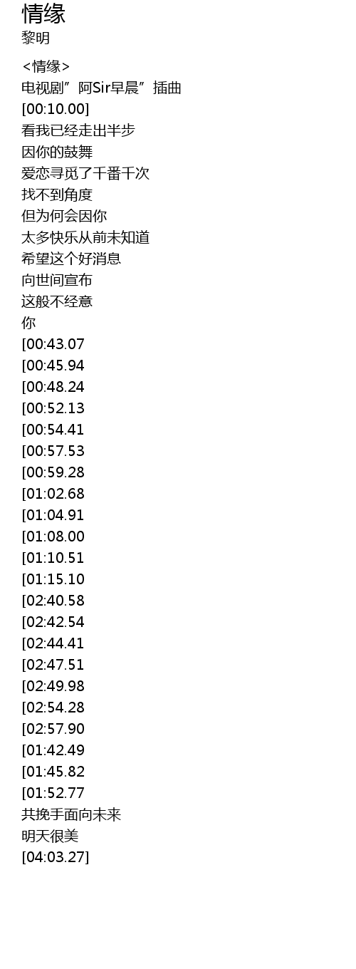 | [00:05.00] | 电视剧”阿Sir早晨”插曲 |