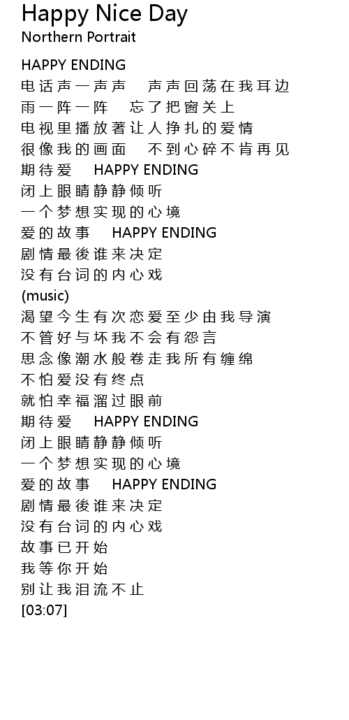| [01:08] | 爱 的 故 事 HAPPY ENDING |