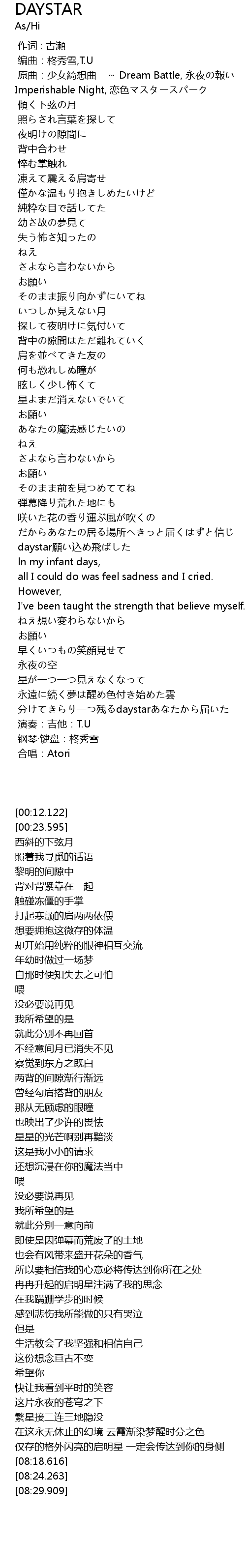 | [08:24.263] | 钢琴·键盘:柊秀雪 |