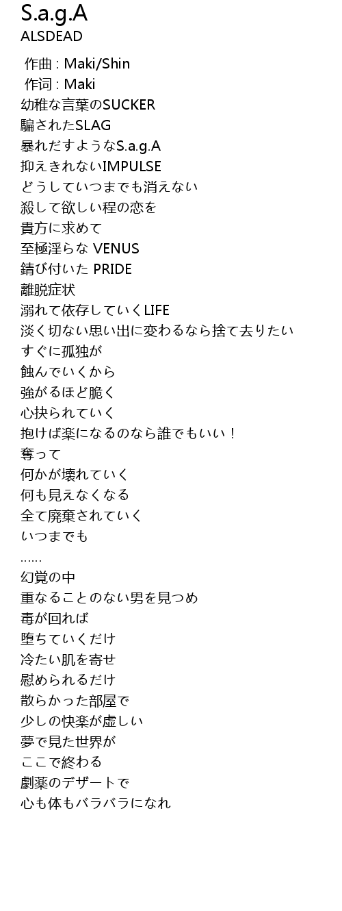 | [00:32.13] | 暴れだすようなS.a.g.A |