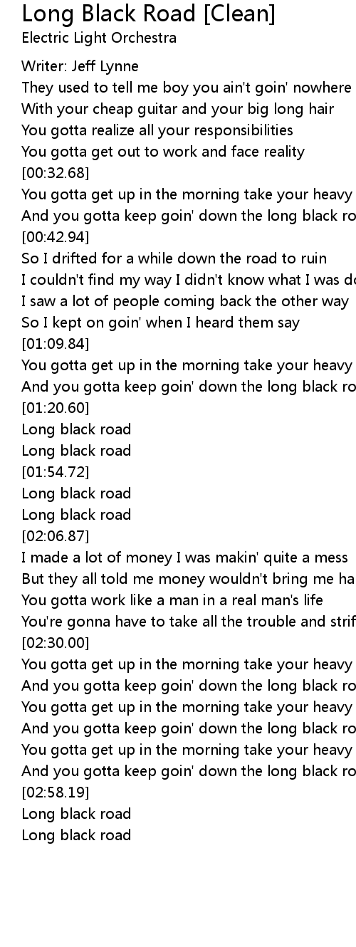 And you gotta keep goin' down the long black road |