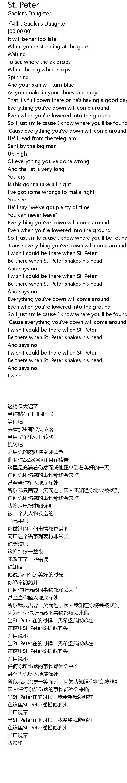 | [02:19.00] | Be there when St. Peter shakes his head |