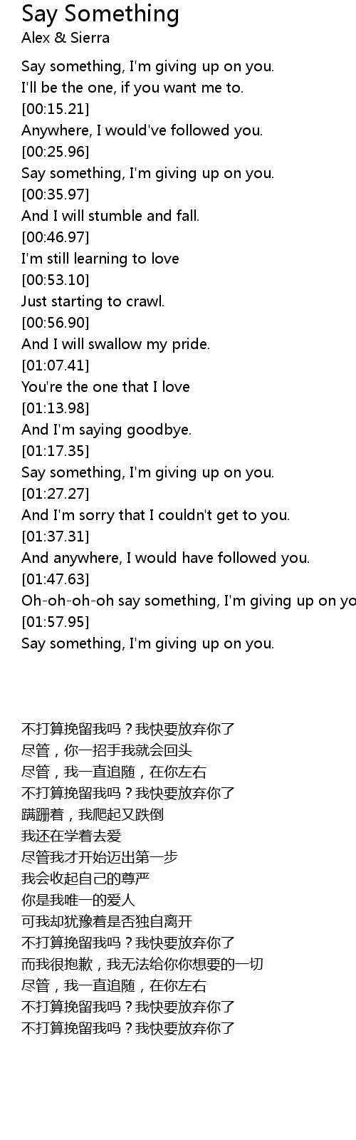 Say something, I'm giving up on you. |