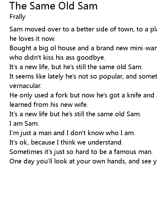 One day you'll look at your own hands, and see you're still the same old Sam. |