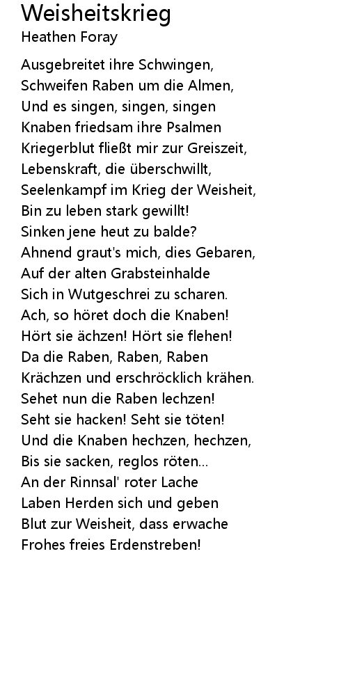 | Kriegerblut flie t mir zur Greiszeit, | |