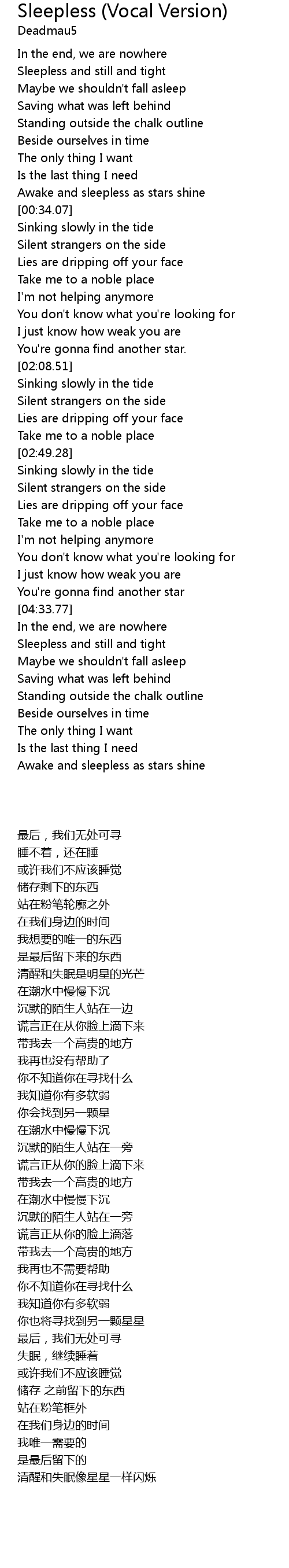 | [05:05.49] | Awake and sleepless as stars shine |
