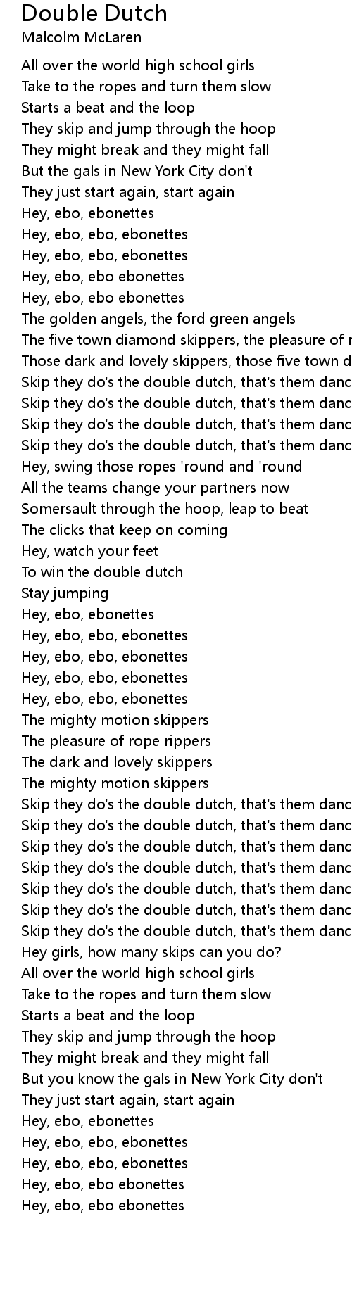 Skip they do's the double dutch, that's them dancing |