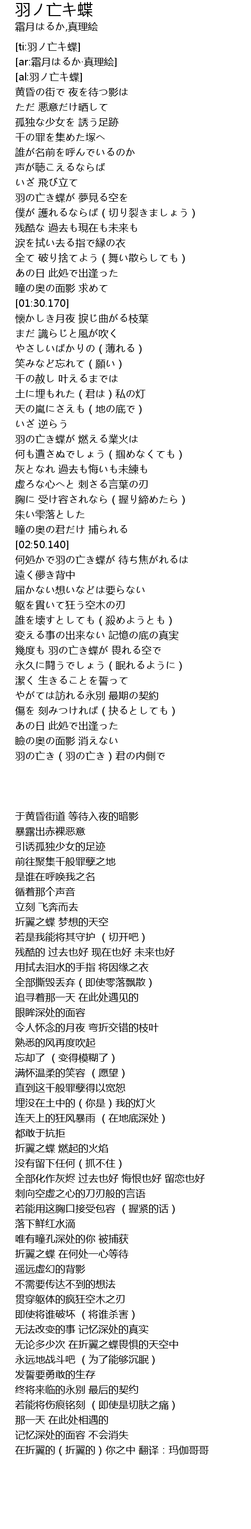 | [04:01.310] | 羽の亡き(羽の亡き)君の内側で |