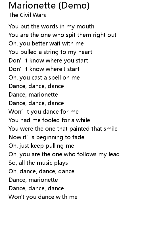 | Dance, marionette | |