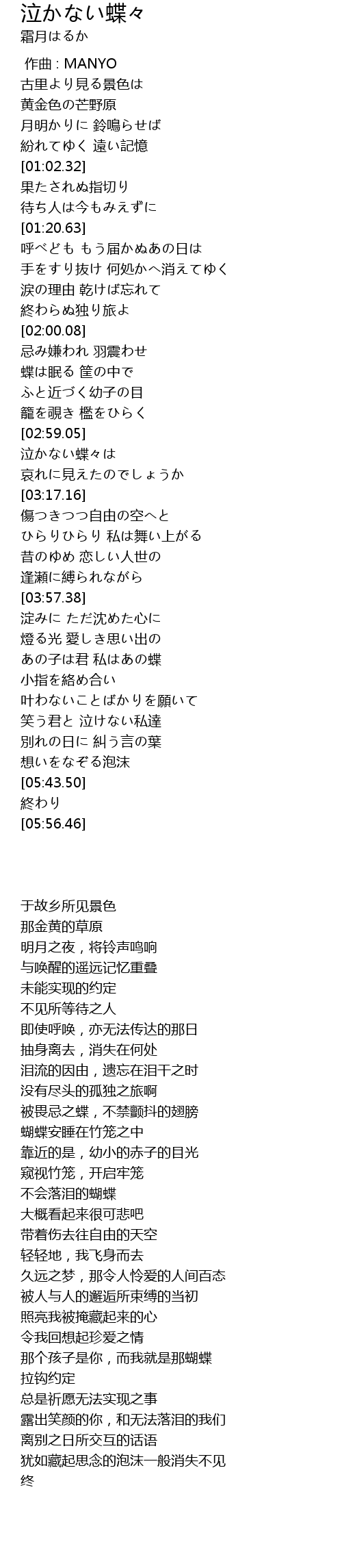 | [04:47.86] | あの子は君 私はあの蝶 |