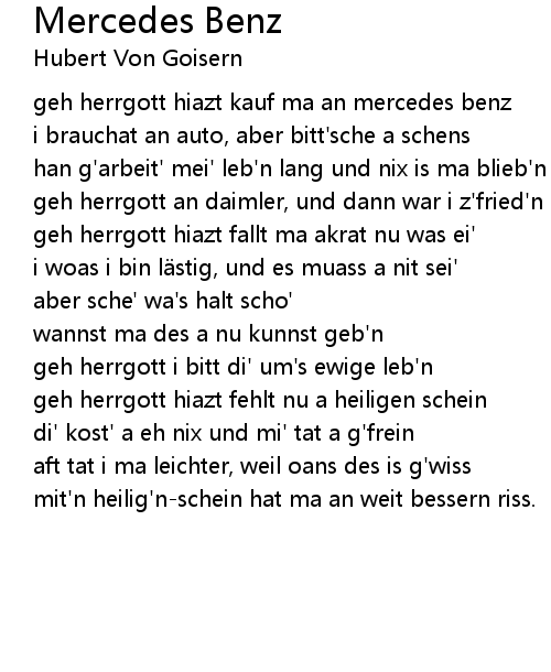 | geh herrgott hiazt kauf ma an mercedes benz | |