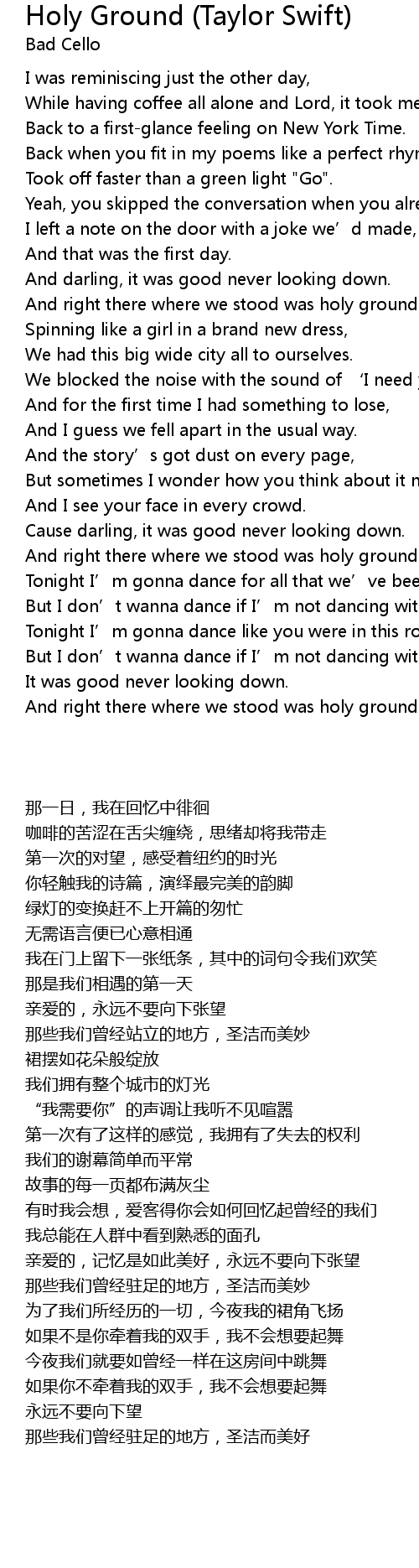 | Song | Holy Ground (Taylor Swift) |