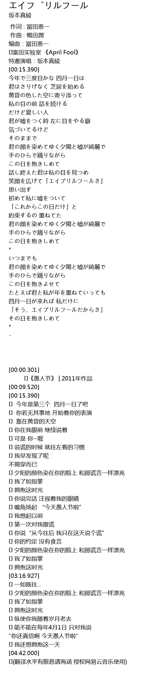 | [00:03.634] | fu tian shi yan shi April Fool |