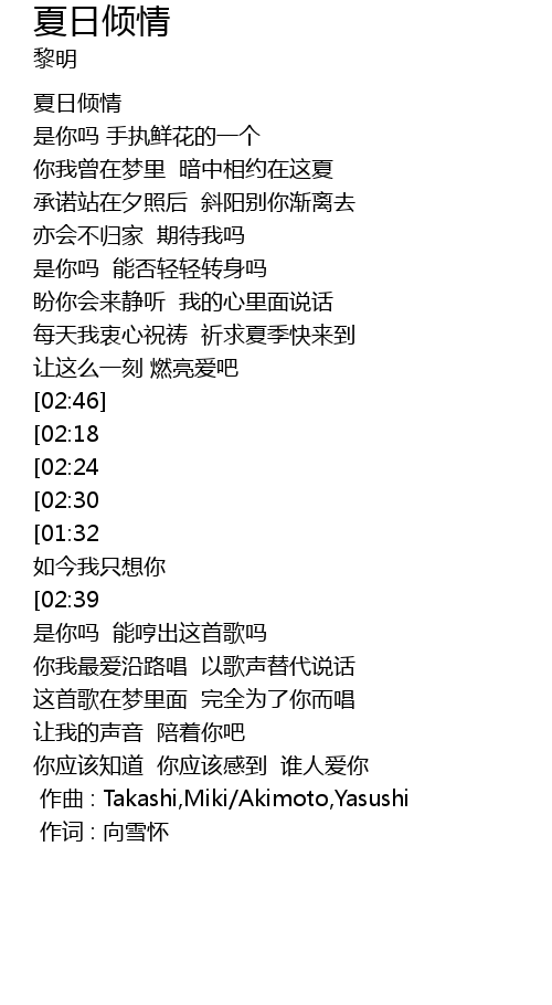 | [00:00.00] | 作曲 : Takashi,Miki/Akimoto,Yasushi |