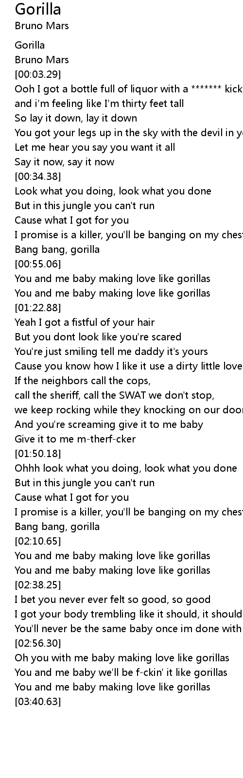 Oh you with me baby making love like gorillas |