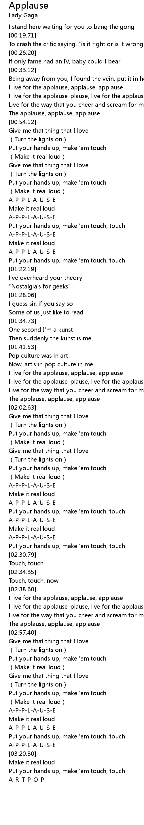 | [01:12.53] | A-P-P-L-A-U-S-E |