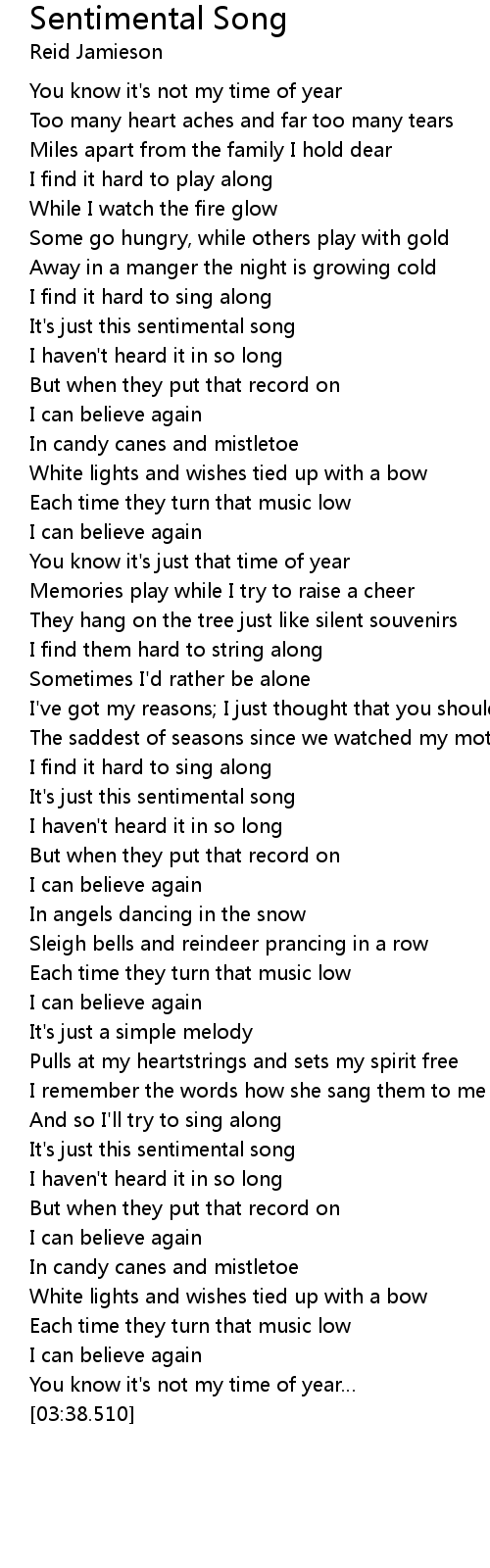 | [01:55.640] | The saddest of seasons since we watched my mother go |