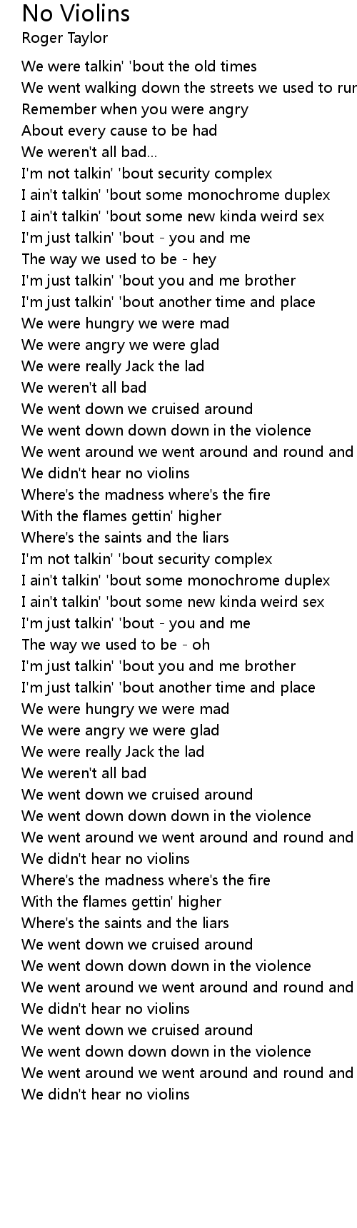We didn't hear no violins |