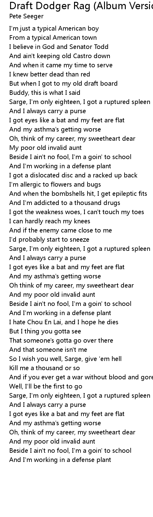 Draft Dodger Rag (Album Version) Lyrics