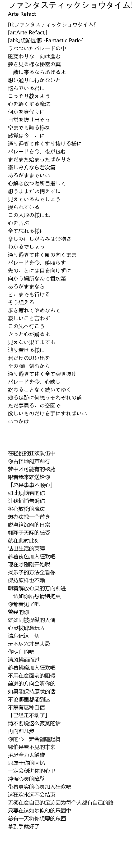 | al: huàn xiǎng yóu yuán xiāng Fantastic Park | |