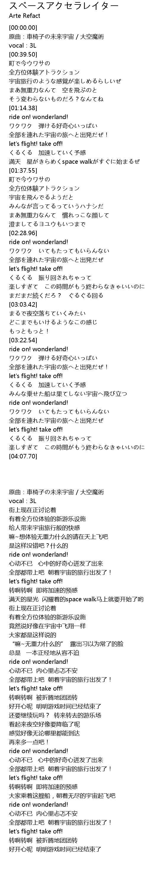 | [00:00.20] | 原曲:車椅子の未来宇宙 / 大空魔術 |