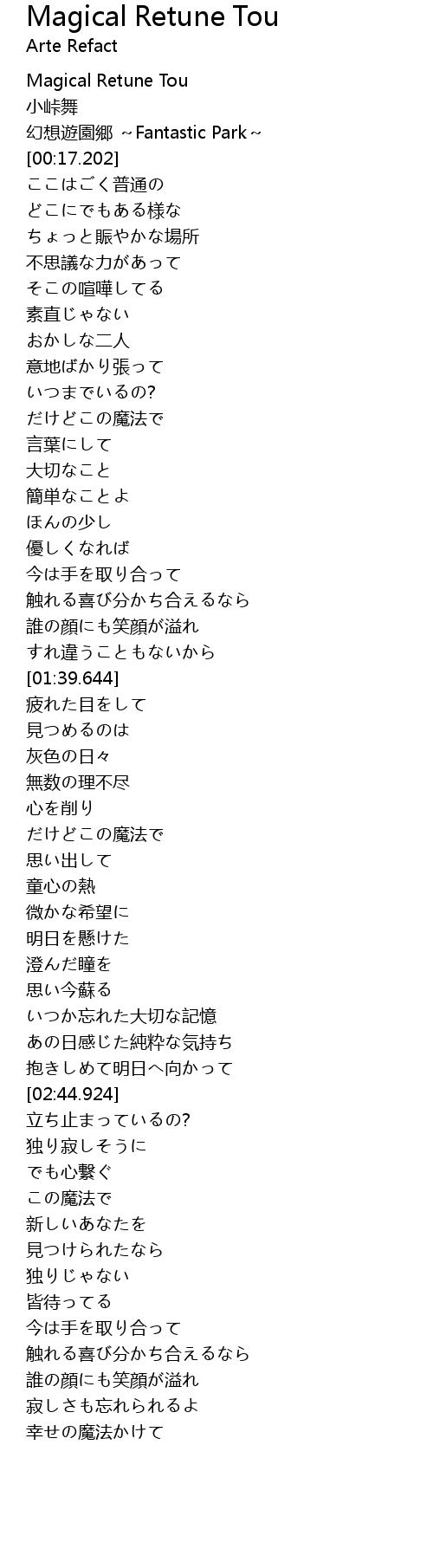 | [00:03.253] | Magical Retune Tou |