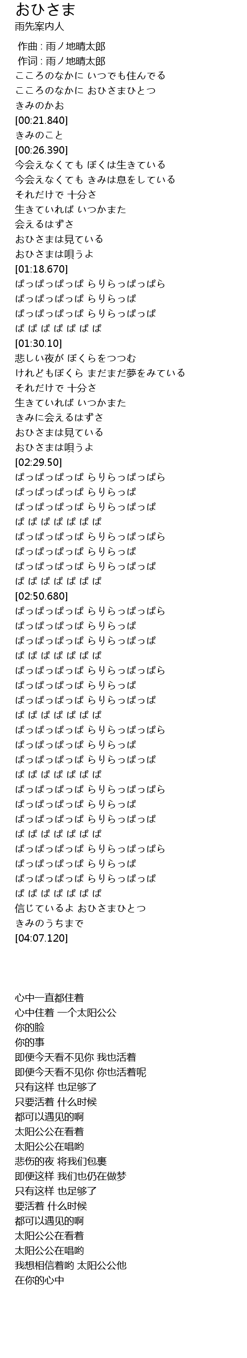 | [03:59.350] | 信じているよ おひさまひとつ |