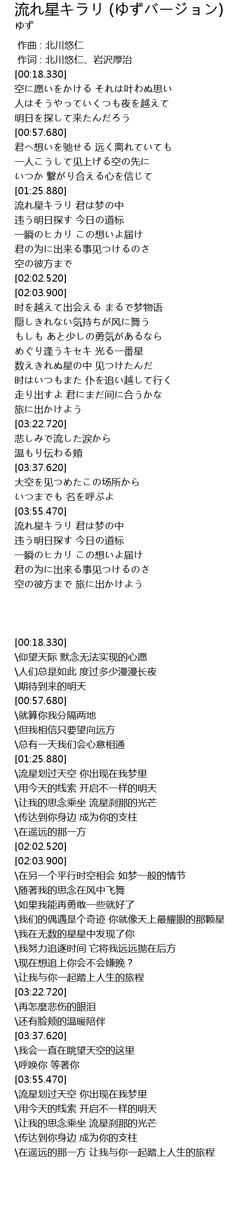 | [03:59.180] | 流れ星キラリ 君は梦の中 |