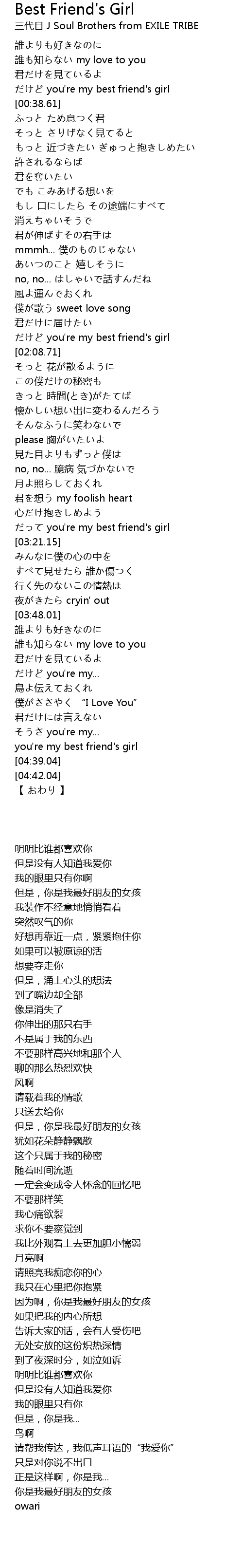 | [02:51.13] | no, no... 臆病 気づかないで |